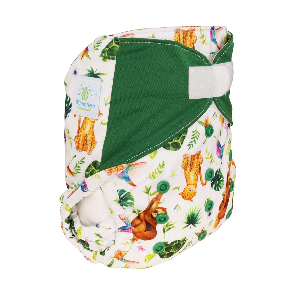 Het OneSize Blümchen overbroekje klittenband is gemaakt van PUL-stof met prachtige print. Zoals de naam al zegt, sluit dit broekje met klittenband. Het overbroekje is verkrijgbaar in verschillende mooie prints.