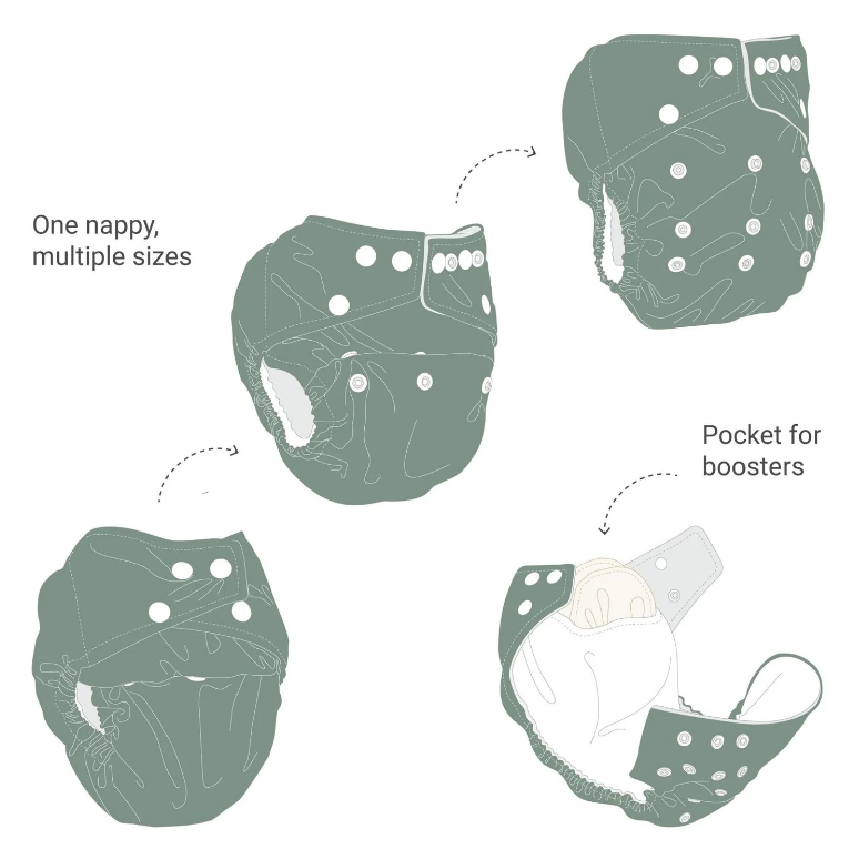 Door de drukknoopjes op de voorkant is de luier te verstellen, waardoor hij past van ongeveer 3,5 tot zo'n 16 kilo. Je hoeft dus maar 1x luiers aan te schaffen en je bent klaar voor de rest van de luierperiode.